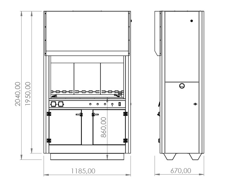 Cuando la compuerta está baja, la cabina es también una barrera física que protege al operario de peligros tales como salpicaduras, aerosoles, fuegos y explosiones menores.